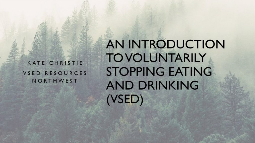 VRNW board member Kate Christie recently offered an introduction to VSED via Zoom to a residential facility in California. The presentation focused on the basics of voluntarily stopping eating and drinking, including the following topics: In addition to exploring clinical information about VSED, Christie explained how both of her parents used VSED to hasten their […]